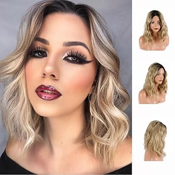Amazon Com Blonde Short Bob Wigs Ombre Dark Roots 2 Tone Heat Resistant Synthetic Lace Front Wigs For Women Drag Queen Natural Wave Female Replacement Short Hair Shoulder Length 14 Inches